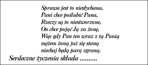 - dedykację (od kogo ): Serdeczne życzenia składa ...........