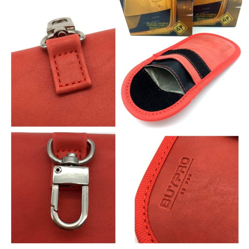 BuyPro Pokrowiec Red: wykonany jest z wysokiej jakości materiału, a wnętrze wykonane jest z czterech warstw tkaniny ekranującej. Bardzo wytrzymały i elegancki. Wymiary zostały dobrane tak aby każdy kluczyk samochodowy się zmieścił. Pokrowiec posiada dwie kieszenie jedna służy do blokowania sygnału, druga natomiast do odblokowania możesz przechowywać kluczyk w niej np podczas jazdy. Ponadto możesz przechowywać w pokrowcu dowód osobisty,prawo jazdy, karty płatnicze aby chronić je przed kradzieżą danych.