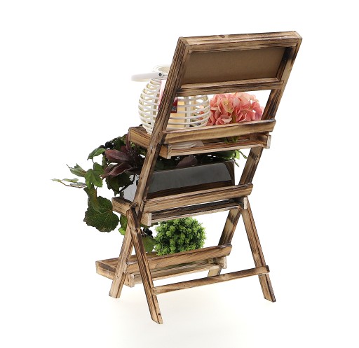 Prezentowany przedmiot wykonany został z drewna pomalowanego na kolorze naturalnego brązu. Podsiada on trzy półki, na których umieścić można 6 mniejszych doniczek.