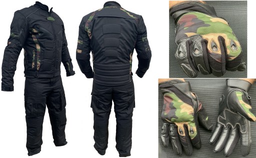 Kurtka + spodnie możliwość spięcia zamkiem, wyjmowane protektory, wypinana podpinka