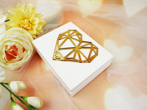 - z zewnątrz złote/srebrne serce geometryczne