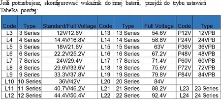Wskaźnik naładowania baterii jest ustawiony domyślnie na 12 V do akumulatora kwasowo-ołowianego. Program L3