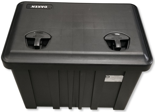 Funkcjonalna skrzynia narzędziowa marki DAKEN (wykonana z polipropylenu metodą wtrysku) o wysokiej odporności na warunki atmosferyczne.