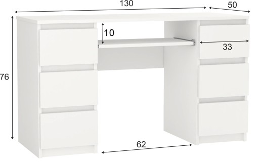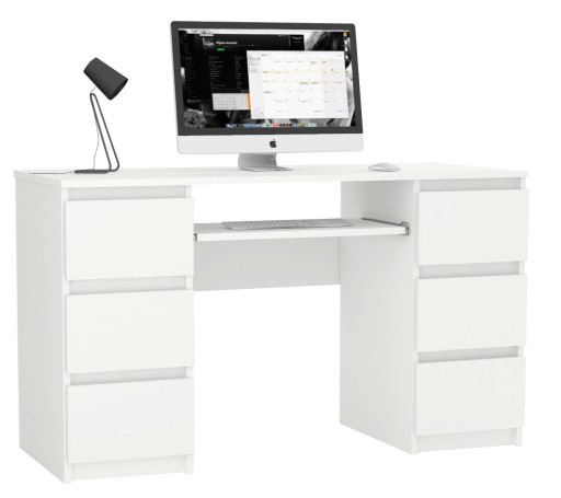 Biurko komputerowe Pari 6 szuflad 130 cm - BIAŁE