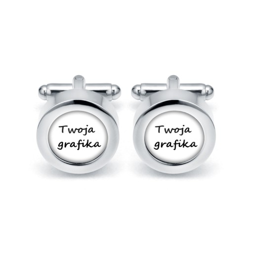 Spinki do mankietów z wysokiej jakości grafiką zamkniętą pod wypukłym szkiełkiem i oprawione w bazę w kolorze srebrnym.