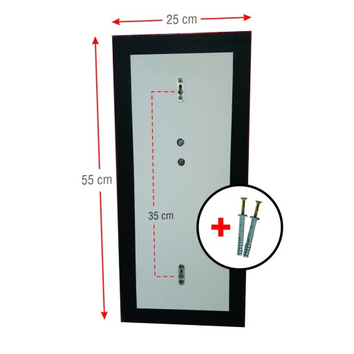 Mocowany do ściany za pomocą dwóch ukrytych zawieszek i kołków dołączonych do opakowania. Nie wystają żadne elementy montażowe, przez co wieszak wygląda estetycznie po zamontowaniu.