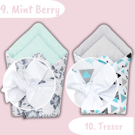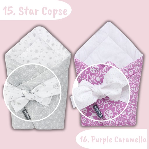 Elegancki rożek niemowlęcy firmy Bellochi to podstawowy element dziecięcej wyprawki. Zapewnia maluszkowi przyjemne otulenie oraz bezpieczeństwo już od pierwszego dnia narodzin. Ułatwia początkującym rodzicom oraz mniej wprawionym domownikom trzymać noworodka na rękach i tulić go. Kiedy niemowlę podrośnie można wykorzystać go również jako kocyk lub matę do pierwszych ćwiczeń. Każda ze stron rożka posiada inny, równie uroczy wzór, dlatego tak szybko się nie znudzi.