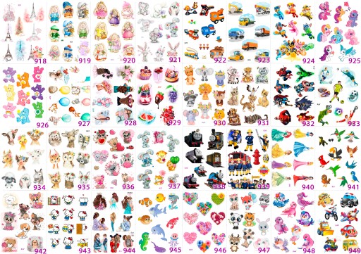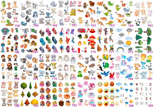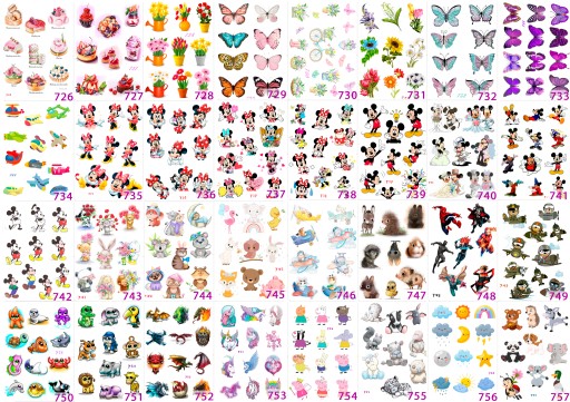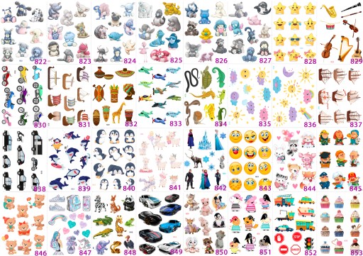 Pojedyncza naklejka ma różne rozmiary od 1,5 do 5 cm, zależy od wzoru