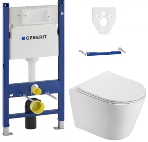 Zestaw WC stelaż Geberit + miska wc Rimless Mexen Rico + deska wolnoopadająca + mata
