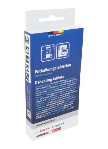 Tabletki odkamieniające SIEMENS TZ80002B są idealne do odkamieniania wszystkich automatycznych ekspresów Siemens oraz wszystkich automatycznych ekspresów do kawy z linii Surpresso. Całkowite oraz bezpieczne usuwanie kamienia i osadu. Wydłużona żywotność urządzenia, dzięki optymalnej ochronie przed osadzaniem się kamienia. Opakowanie zawiera 3 sztuki tabletek, co wystarcza na 3 zastosowania.