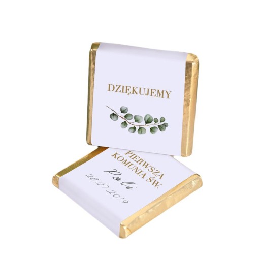 CZEKOLADKI na Chrzest/Komunię Z IMIENIEM Eukaliptus 10szt