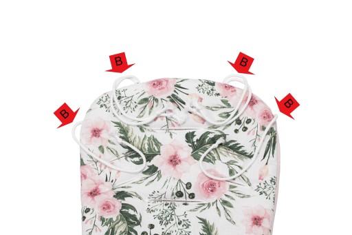B-Wszyte troczki umożliwiają przypięcie wkładki do oparcia wózka, zapobiega to zsuwaniu się wkładki z siedziska