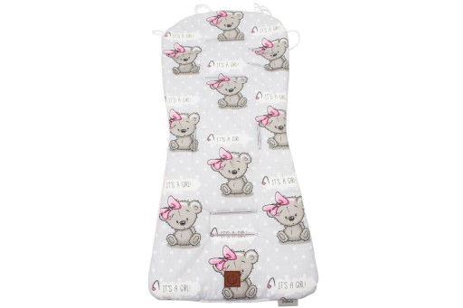 B-Wszyte troczki umożliwiają przypięcie wkładki do oparcia wózka, zapobiega to zsuwaniu się wkładki z siedziska