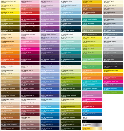 - Kolory farb można wybrać z zamieszczonej karty i wybrać dowolną kombinację.