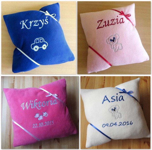 Ta aukcja i cena dotyczą poduszki z Twoim haftem w postaci max. 5 słów (data liczona jako jedno słowo) i 1 motywu graficznego.