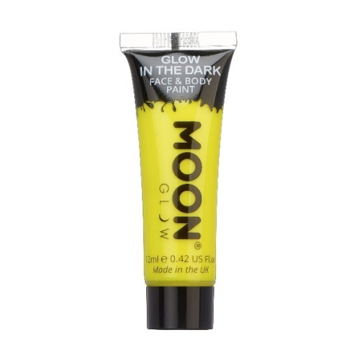 Farby Moon Glow Glow In The Dark Face &Body Panit są to farby, które świecą w świetle UV i dodatkowo dają efekt świetlny w ciemności. Można nimi malować na ciele i na twarzy (nie należy malować w okolicach oczu i ust). Farby Glow In The Dark najlepiej ładują się w świetle UV ale również w świetle dziennym, żeby świecić w ciemności. Farbki bezbarwnej najlepiej używać jako TOP COAT do wzmocnienia świecenia. Dla lepszego efektu należy nałożyć dwie warstwy farby. Farbki są zapakowane w tubki po 12ml każda. Świetne na imprezy urodzinowe i inne okazje do zabawy. Łatwo zmywają się woda z mydłem. Proszę wziąć pod uwagę, że jest to produkt kosmetyczny, gdzie krycie i wydajność podlegają indywidualnej ocenie klienta. Wszystkie produkty firmy Moon Glow posiadają certyfikaty kosmetyczne i są zgodne z normą EU1223/2009.