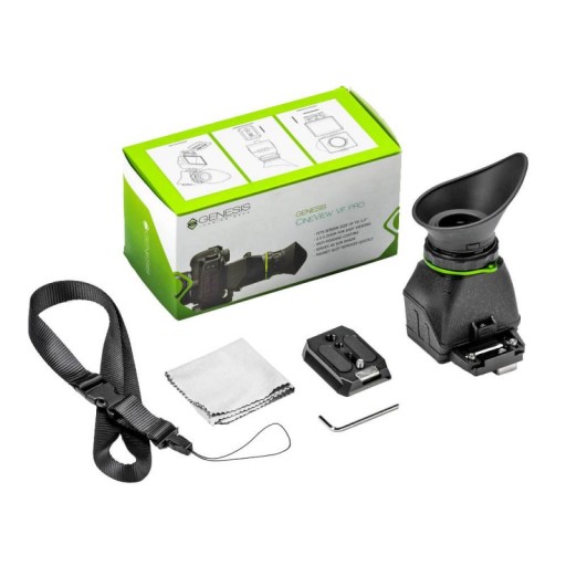 Wizjer Genesis CineView LCD Viewfinder Pro przeznaczony jest dla użytkowników kamer i aparatów posiadających wyświetlacze LCD o przekątnej 3 – 3.2”. Wizjer jest idealnie dopasowany do 3,2 calowego wyświetlacza. Obraz na wyświetlaczu LCD jest jasny i ostry, a szkło powiększające (powiększenie x2,5) sprawia, że wyświetlacz wydaje się być dużo większy i wyraźniejszy, co umożliwia pełną kontrolę nad kadrem, głębią ostrości i ekspozycją. Duża muszla oczna, wykonana z miękkiego tworzywa gumowego, zapewnia doskonałe zaciemnienie wewnątrz wizjera. Wizjer mocowany jest do urządzenia za pomocą płytki statywowej z uniwersalnym gwintem ¼”. Dzięki magnetycznemu klipsowi, wizjer można w bardzo prosty sposób zdemontować, bez konieczności odkręcania płytki. Można go również otworzyć, aby mieć podgląd bezpośrednio na wyświetlaczu kamery/aparatu, bez demontowania poszczególnych elementów. W takiej konfiguracji część obudowy wizjera tworzy osłonę przeciwsłoneczną, która chroni wyświetlacz przed zbyt jasny światłem. Dodatkowym atutem wizjera jest możliwość regulacji dioptrii. Podstawowe cechy: