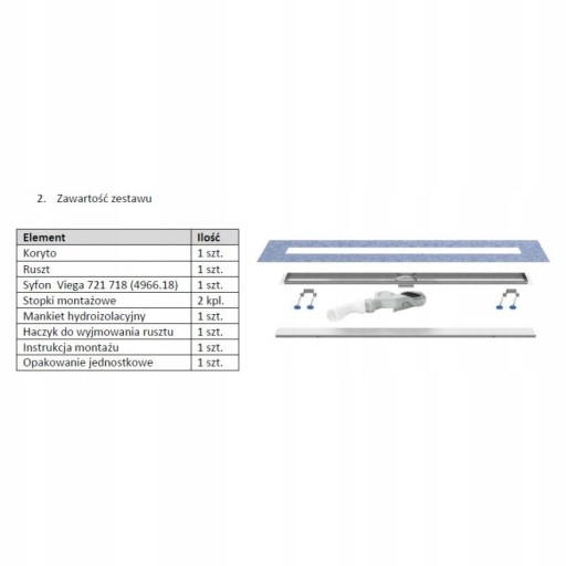 - syfon bardzo wydajny - 38l/min. syfon VIEGA z odpływem FI 50mm -niska zabudowa od 62mmmożliwość obrócenia syfonu w stronę istniejącej instalacji odpływowej