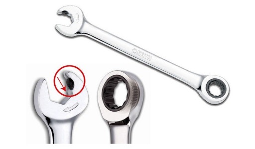 Po przeciwnej stronie klucza unikatowa, opatentowana grzechotka z mechanizmem pionowym z czterema punktami podparcia, co pozwala znacznie przyspieszyć pracę: