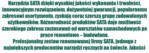 Firma SATA jako jedna z pierwszych w tej branży udzieliła dożywotniej gwa rancji na swoje narzędzia ręczne, co niewątpliwie świadczy o wysokiej jakości i trwałości narzędzi.