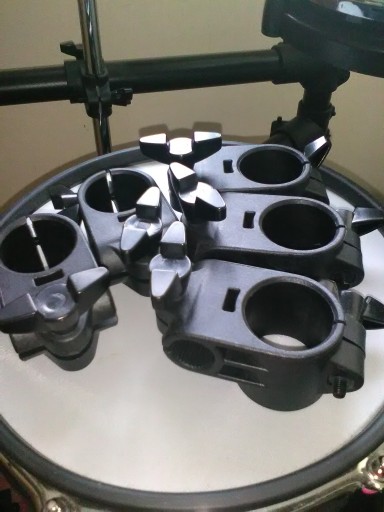 Rack Clamps/////////////////////////////////////////ZACISKI DO PERKUSJI ELEKTRONICZNEJ MILLENIUM , 5 SZTUK KOMPLET , JAK NA ZDJECIU KUPIONE W THOMANN, UZYWANE , STAN BARDZO DOBRY , JAK NOWE !!!!!! BEZ PRETA TYLKO SAME ZACISKI