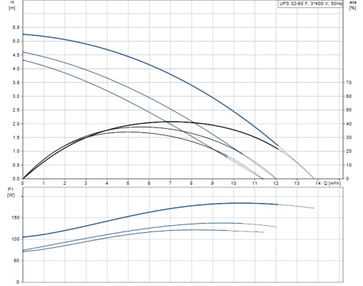 Układy sterowania: Przekaźnik: bez przekaźnika Ciecz: Czynnik tloczony: Woda Zakres temperatury cieczy: -10 .. 120 °C Temperatura cieczy: 20 °C Gęstość: 1000 kg/m3 Lepkość kinematyczna: 1 mm2/s Techniczne: Dopuszczenia na tabliczce znamionowej: TSE,GOST2 Materiały: Korpus pompy: Żeliwo szare Korpus pompy: EN-JL1040 Korpus pompy: ASTM 35 B - 40 B Wirnik: Stal nierdzewna Wirnik: DIN W.-Nr. 1.4301 Wirnik: AISI 304 Instalacja: Zakres temperatury otoczenia: 0 .. 40 °C Maksymalne ciśnienie pracy: 10 bar Kołnierz standardowy: DIN Przyłącze rurowe: DN 32 Ciśnienie: PN 6 / PN 10 Długość montażowa: 220 mm Dane elektryczne: Moc wejściowa przy prędkości 1: 70 W Moc wejściowa przy prędkości 2: 155 W Moc wejściowa przy prędkości 3: 250 W Częstotliwość podstawowa: 50 Hz Napięcie nominalne: 3 x 400-415 V wysokość podnoszenia 5,3m maksymalna wydajność 13m3/h Rodzaj ochrony (IEC 34-5): X4D Klasa izolacji (IEC 85): F Inne: Masa netto: 17.3 kg Masa: 17.5 kg Objętość wysyłkowa: 0.026 m3