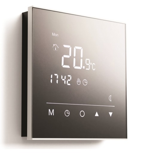 TouchStat jest dwuczujnikowym regulatorem przeznaczonym do systemów wodnego i elektrycznego ogrzewania podłogowego (maty i kable grzejne) o mocy do 3,6 kW, wyposażony jest w wbudowany czujnik temperatury powietrza oraz odległościowy czujnik temperatury podłogi i może działać w następujących trybach pracy: