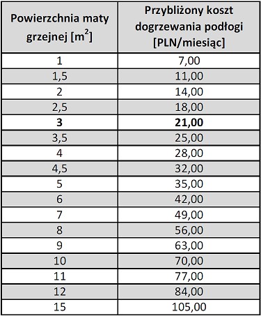 - Całkowita moc grzejna maty o powierzchni 3m2 - 0,45kW