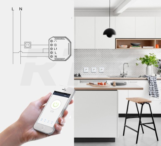 Moduł przekaźnika instaluje się w puszce pod tradycyjnym gniazdkiem. Po instalacji można będzie sterować dowolnym urządzeniem podłączonym do gniazdka.