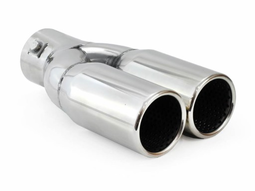 Końcówka tłumika marki AMIO, model MT004 z podwójnym wydechem o okrągłym kształcie (średnice 63mm). Wykonana z wysokiej jakości stali nierdzewnej co zapewnia odporność na warunki atmosferyczne, spaliny i wysokie temperatury.