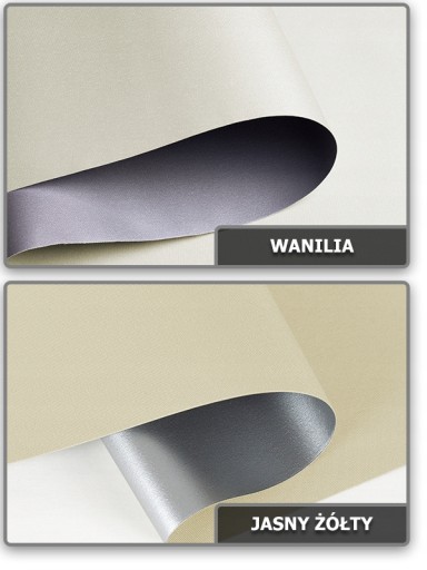 ➡️ Materiał rolety termicznej składa się z trzech warstw a) kolorowa od strony wnętrza b) środkowa podgumowana odpowiadająca za 100% zaciemnienia c) srebrna odbijająca promienie słoneczne