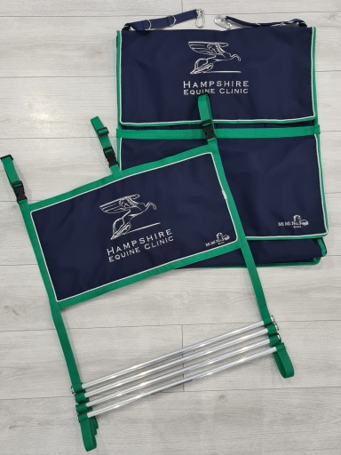 Torba posiada cztery małe kieszenie w górnym rzędzie np.na szczotki, kopystki, itp. oraz jedną dużą kieszeń w dolnym rzędzie w której spokojnie zmieszczą się owijki, ochraniacze czy nawet cieńsza derka.
