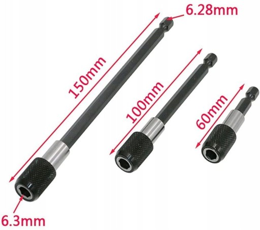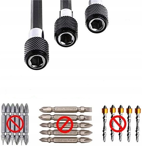 Komplet uchwytów do bitów wykonany ze stali chromowo-wanadowej.