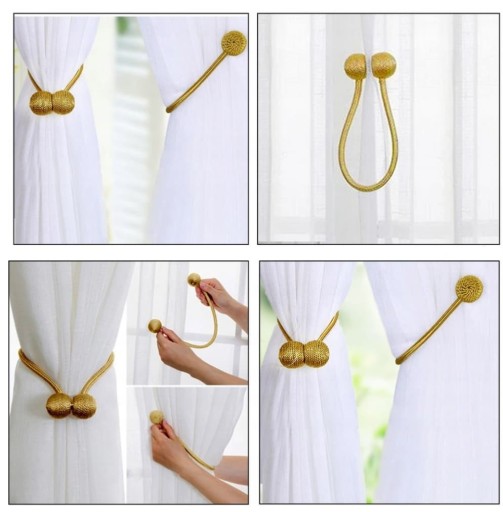 КРЕПЛЕНИЕ ШТОР МАГНИТНАЯ ПРЯЖКА ЗОЛОТЫЕ ШАРИКИ ДЕКОР ОКНА