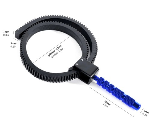 Po prostu zamontuj zębatkę na obiektywie i kontroluj ustawienie ostrości/zoomu za pomocą metalowej szpatułki.