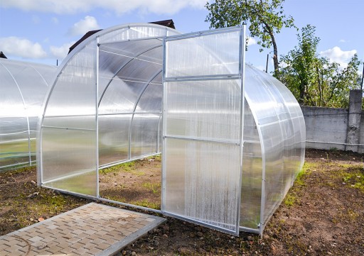 Do pokrycia 6-metrowej szklarni „MOCNA" potrzebne są 4 arkusze poliwęglanu komorowego o wymiarach 2,1x6m.