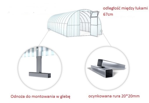Szklarnia „MOCNA" jest przeznaczona do stworzenia mikroklimatu sprzyjającego uprawie roślin ogrodowych na działkach letniskowych i przydomowych. Konstrukcja szkieletowa wykonana jest ze stali ocynkowanej o przekroju kwadratowym (profil kwadratowy) w wymiarach 20 x 20 x 0,8mm co gwarantuje stabilność i wieloletnią trwałość, skutecznie chroni przed korozją. Szklarnia „MOCNA" ma szerokość 3m, wysokość 2m, długość 6m (długość szklarni można powiększyć dodatkowymi dwumetrowymi zestawami wydłużającymi). W obu przeciwległych ścianach czołowych szklarnia posiada drzwi o rozmiarze 0,95x1,85 m z oknami uchylnymi.