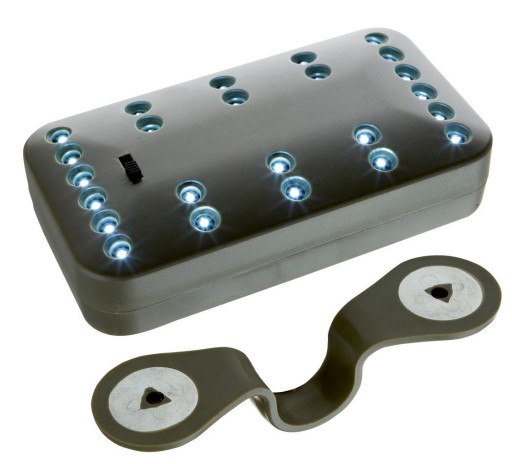 Profesjonalna lampka campingowa z 24 LED'ami i wyłącznikiem. Specjalny design umożliwia perfekcyjne oświetlanie namiotu we wszystkich kierunkach. Zasilana na 4 baterie AA 1,5V. Posiada wbudowane magnetyczne mocowanie (dzięki któremu lampkę możemy przymocować do łodzi). Pasujący uchwyt pozwala na przypięcie lampki do namiotu lub torby.