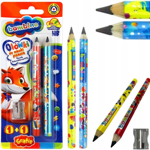 Ołówki Grube Do Nauki Pisania Trójkątne 2szt + Temperówka Bambino