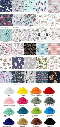 Kolorystykę kompletu można wybrać z poniższych wzorów bawełny i kolorów minky
