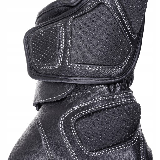 - długi mankiet z mocnymi rzepami i piankowymi protektorami usztywnia i chroni nadgarstek, zapobiegając też przedostawaniu się do środka zabrudzeń czy chłodu