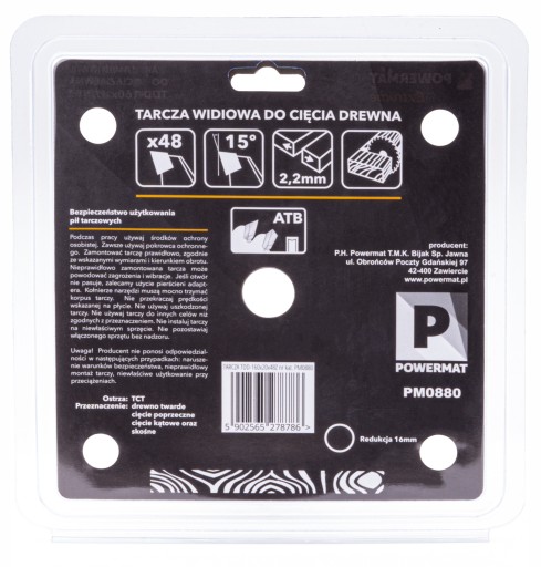 - Materiał zębów: TCT (TUNGSTEN CARBIDE TIPPED)