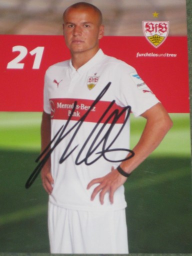 Adam Hlousek (VfB Stuttgart) - karta klubowa z oryginalnym autografem. Nieznacznie uszkodzone rogi karty.