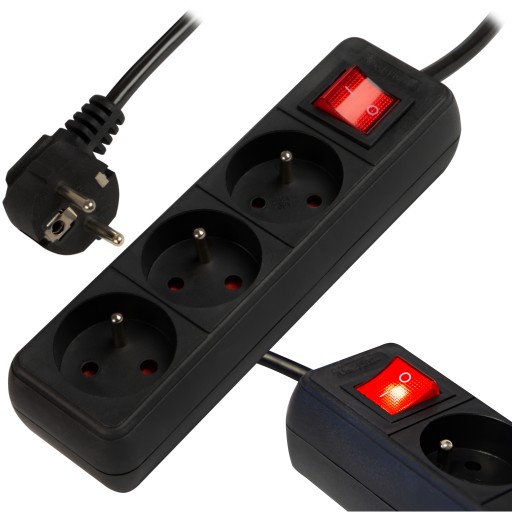 Przedłużacz sieciowy BLOW w kolorze czarnym z trzema gniazdami przeznaczony do użytku domowego. Przedłużacz pozwala podłączyć urządzenia, które są oddalone od gniazda elektrycznego. Produkt z jednej strony posiada 3 gniazda obrócone pod kątem, a z drugiej pojedynczy kątowy wtyk sieciowy.
