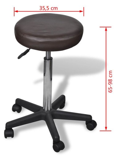 - Wymiary: średnica podstawy - 52 cm, średnica siedziska - 35,5 cm, regulacja wysokości - 65 - 98 cm.