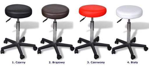 - Wymiary: średnica podstawy - 52 cm, średnica siedziska - 35,5 cm, regulacja wysokości - 65 - 98 cm.