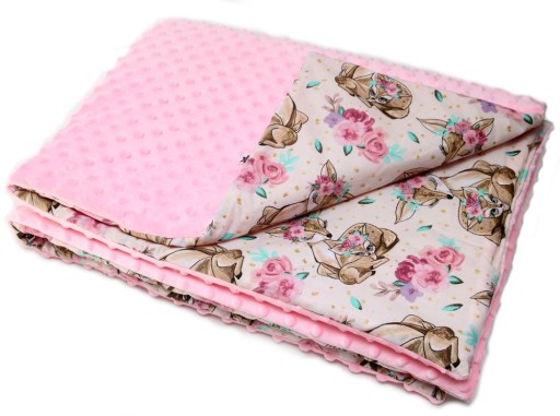 Różowy pastelowy minky+Sarenki