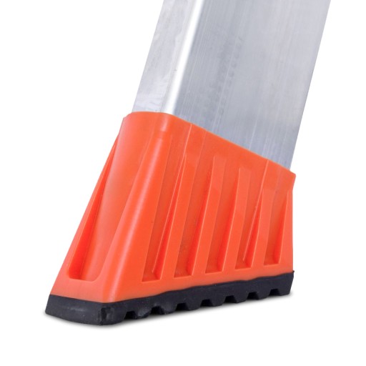 Wszystkie nogi wyposażone w stopki z tworzywa sztucznego z podgumowanym spodem, które zabezpieczają drabinę przed poślizgiem i powierzchnię przed uszkodzeniem (np. drewnianą podłogę lub kafelki na wysoki połysk).