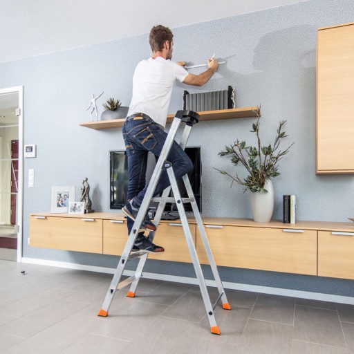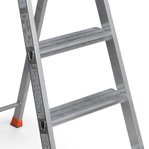 Zaprojektowano ją z myślą o biurach warsztatach i zakładach pracy, ale także o gospodarstwach domowych. Duży podest z zintegrowaną półką i szerokie stopnie gwarantują wygodną i bezpieczną pracę, a solidne połączenia elementów czynią tą drabinę jedną z najtrwalszych na rynku. Spełnia normy EN-131 przez co bez przeszkód można jej używać również w zakładach pracy.