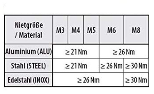 - do nitonakrętek M3-M4-M5-M6-M8 wykonanych z aluminium, miedzi, stali, stali nierdzewnej